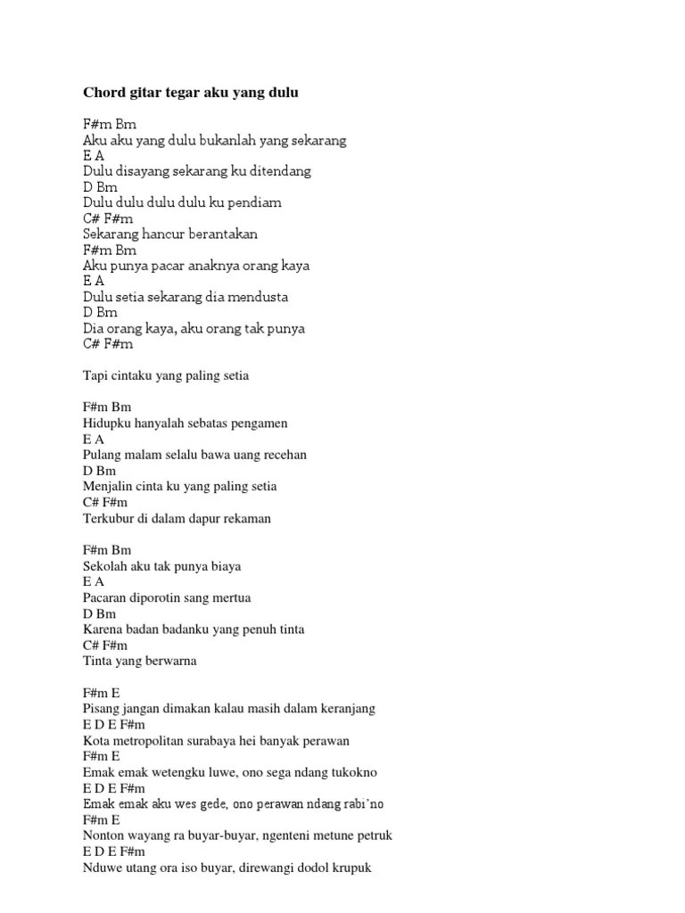 Am em f g menyusuri gemerlapnya kehidupan intro am em f e Em c d em 2x. F dm dulu.dulu.dulu ku menderita Am dm g c … Am dm tak pernah mereka bayangkan e am terlahir begitu. G c dulu di tendang sekarang ku di sayang. C f dm tergoda aku tuk berfikir… g c dia yang tercinta. Intro am dm g c f dm e am dm aku yang dulu bukanlah yang sekarang. Layanan mobile dari situs entertainment terbesar indonesia, kapanlagi.com. Layanan mobile dari situs entertainment terbesar indonesia, kapanlagi.com. Berikut ini adalah lirik dan chord lagu tegar dari rossa. Am g am dm g c f dm e am dm aku yang sekarang, bukan aku yang lama C f dm g c dm g f.